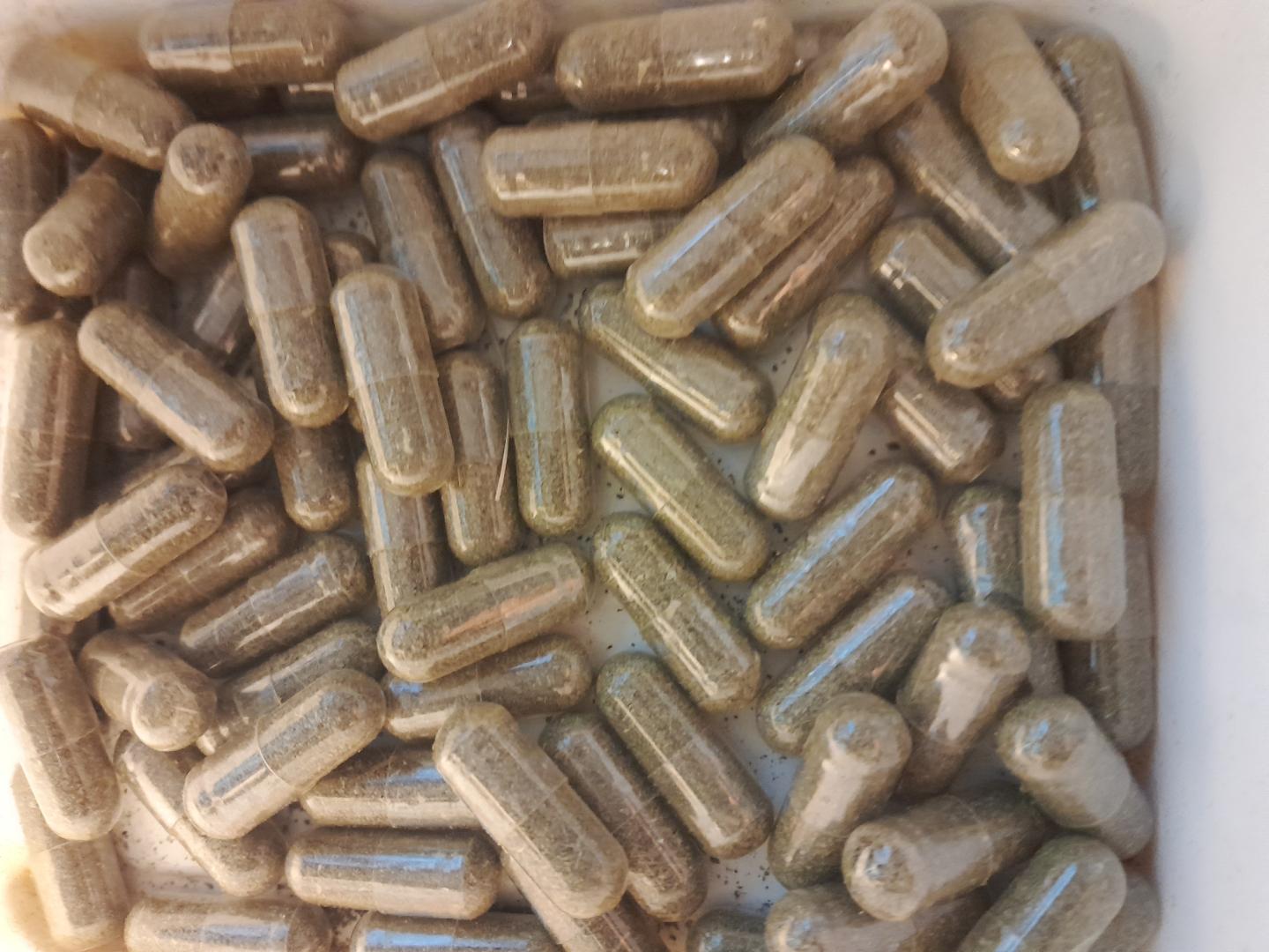 Gyógynövények és gyógyteafűvek porítása után, 00-as zselatin kapszulákba zárva