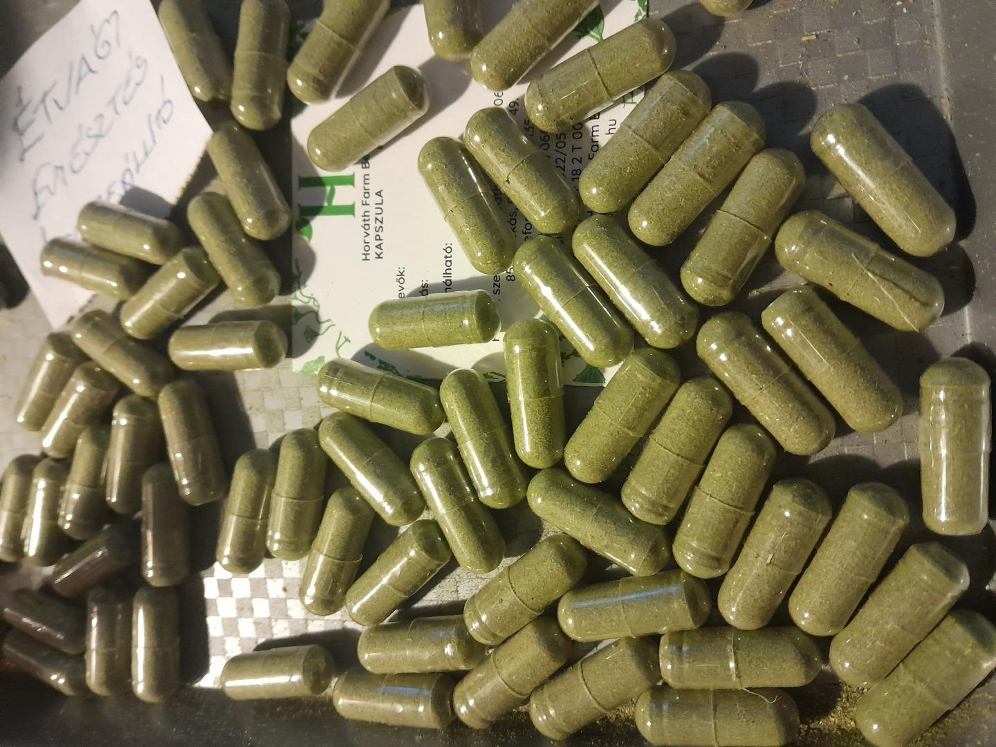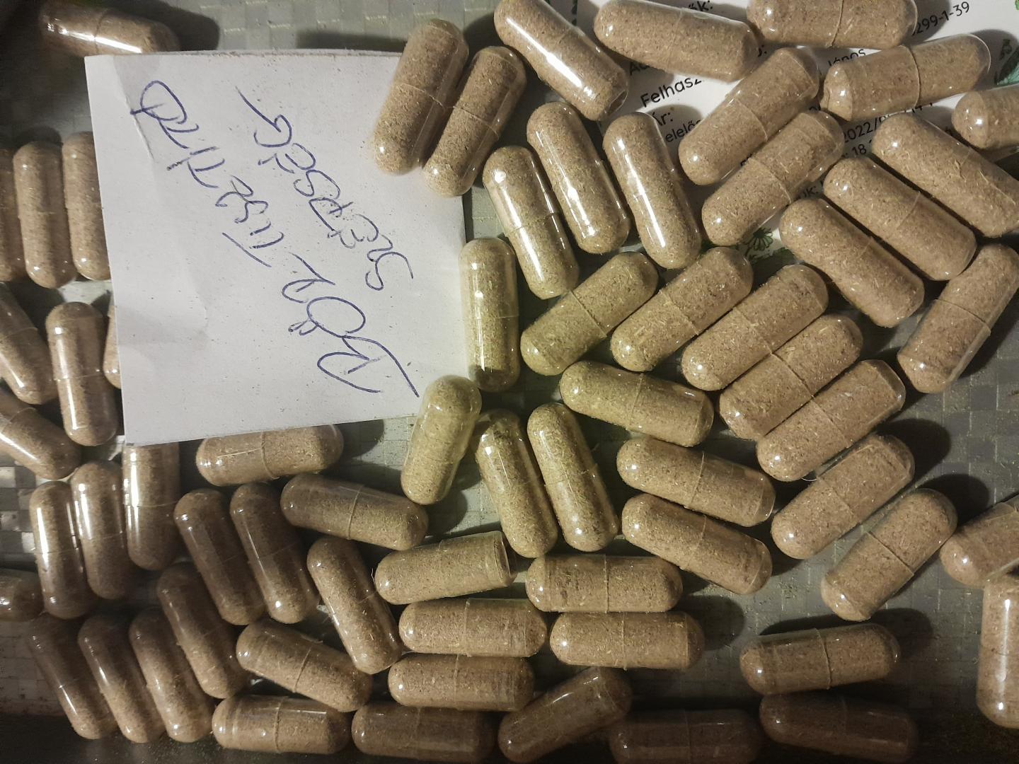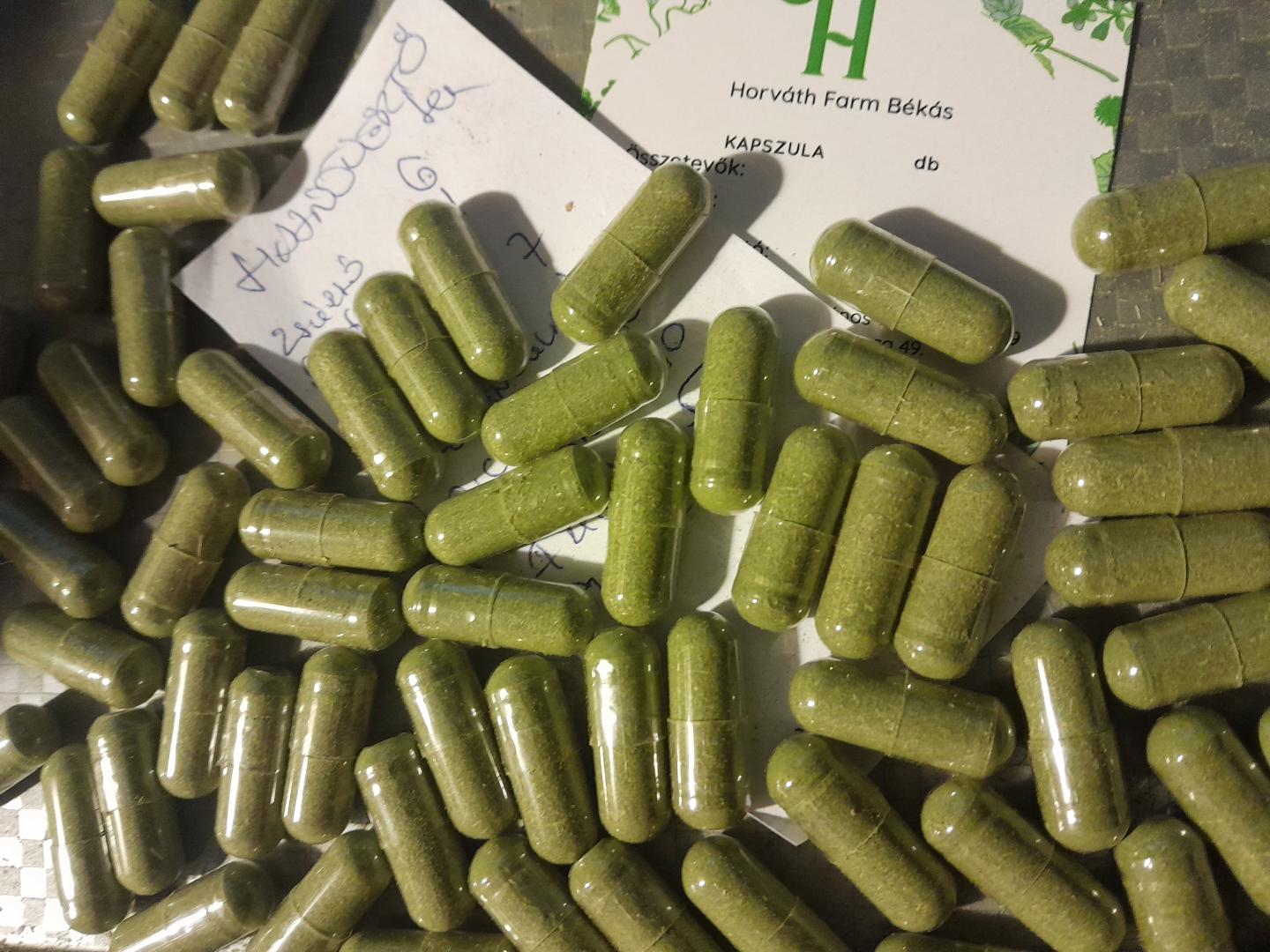 Gyógynövények és gyógyteafűvek porítása után, 00-as zselatin kapszulákba zárva